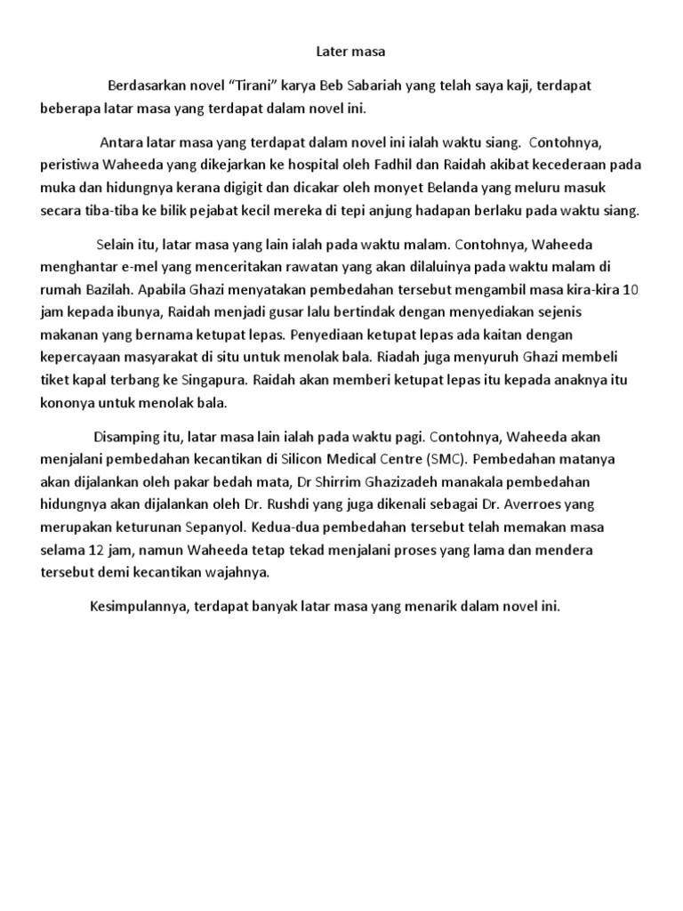 L peristiwa dalam novel tirani yang boleh dijadikan teladan dan alasan 1 from ppppm fin4701 at university of malaysia, terengganu. Huraikan dua peristiwa menarik pada bahagian permulaan. Dayang muda inti pati peristiwa penting . Novel percubaan spm 2019 flip ebook pages 1 50 anyflip . Novel yang saya kaji ialah novel tirani, karya beb sabariah. Peristiwa penting soalan 8 6 markah. You have just read the article entitled peristiwa penting novel tirani. Start studying novel tirani peristiwa penting.
